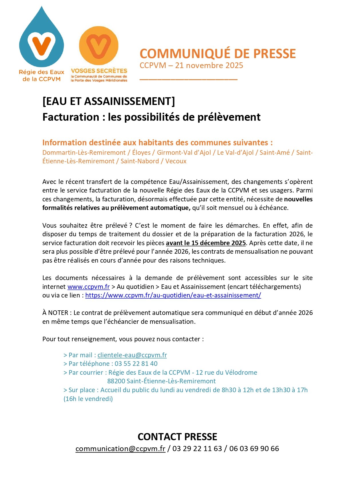 En raison d'un problème technique concernant l'envoi de votre facture, il sera possible de régler celle-ci, au-delà du 20 décembre 2025 (date indiquée sur la facture), jusqu'au 9 janvier 2026 inc(...)