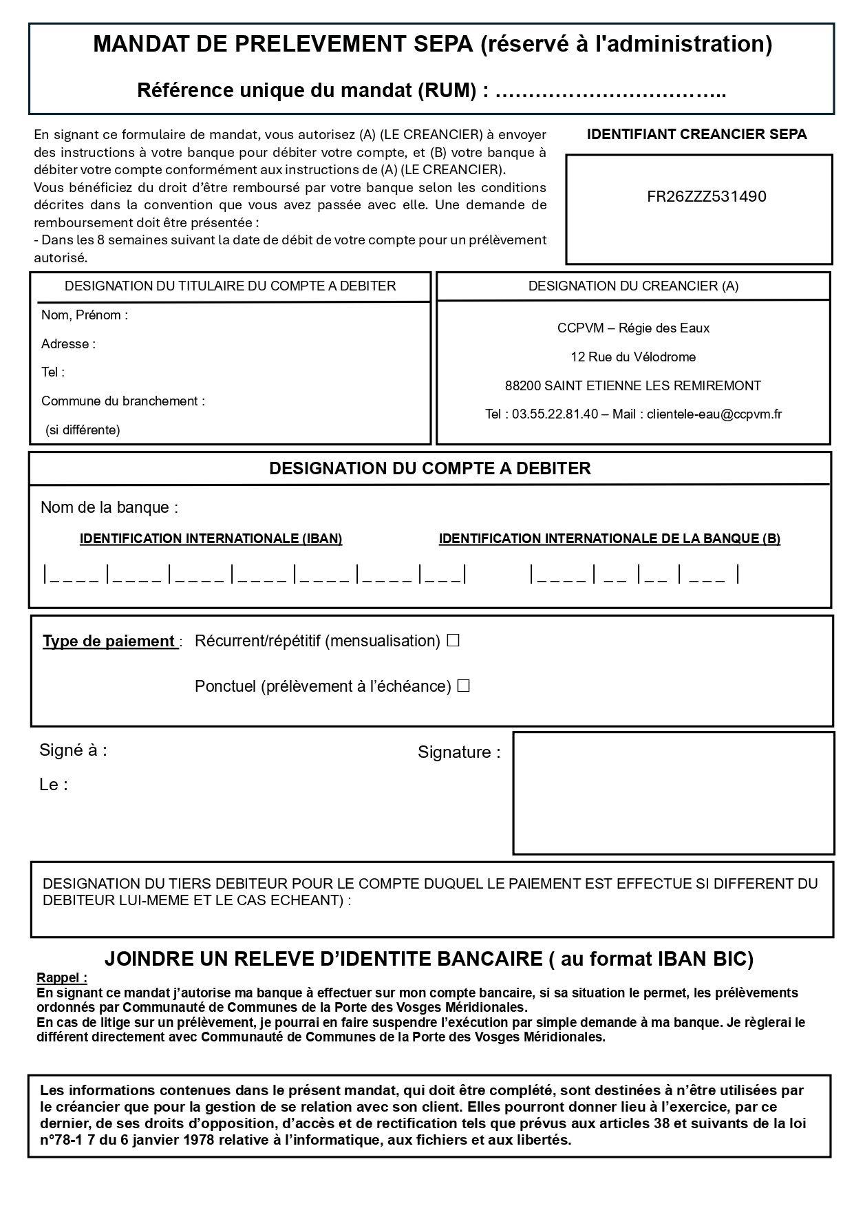 Le règlement du service eau potable et règlement du service assainissement collectif sont consultables en Mairie.