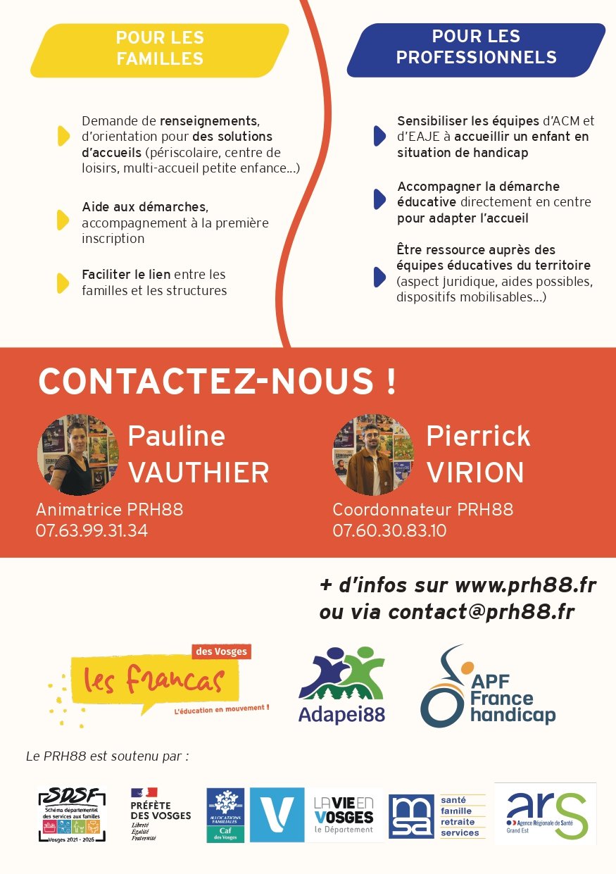 L'ouverture du Pôle Ressources Handicap Vosges (PRH 88) porté par l'Association départementale des Francas des Vosges, avec l'Adapei88 et l'APF France handicap Vosges est effective depuis le 1er avril 2025.