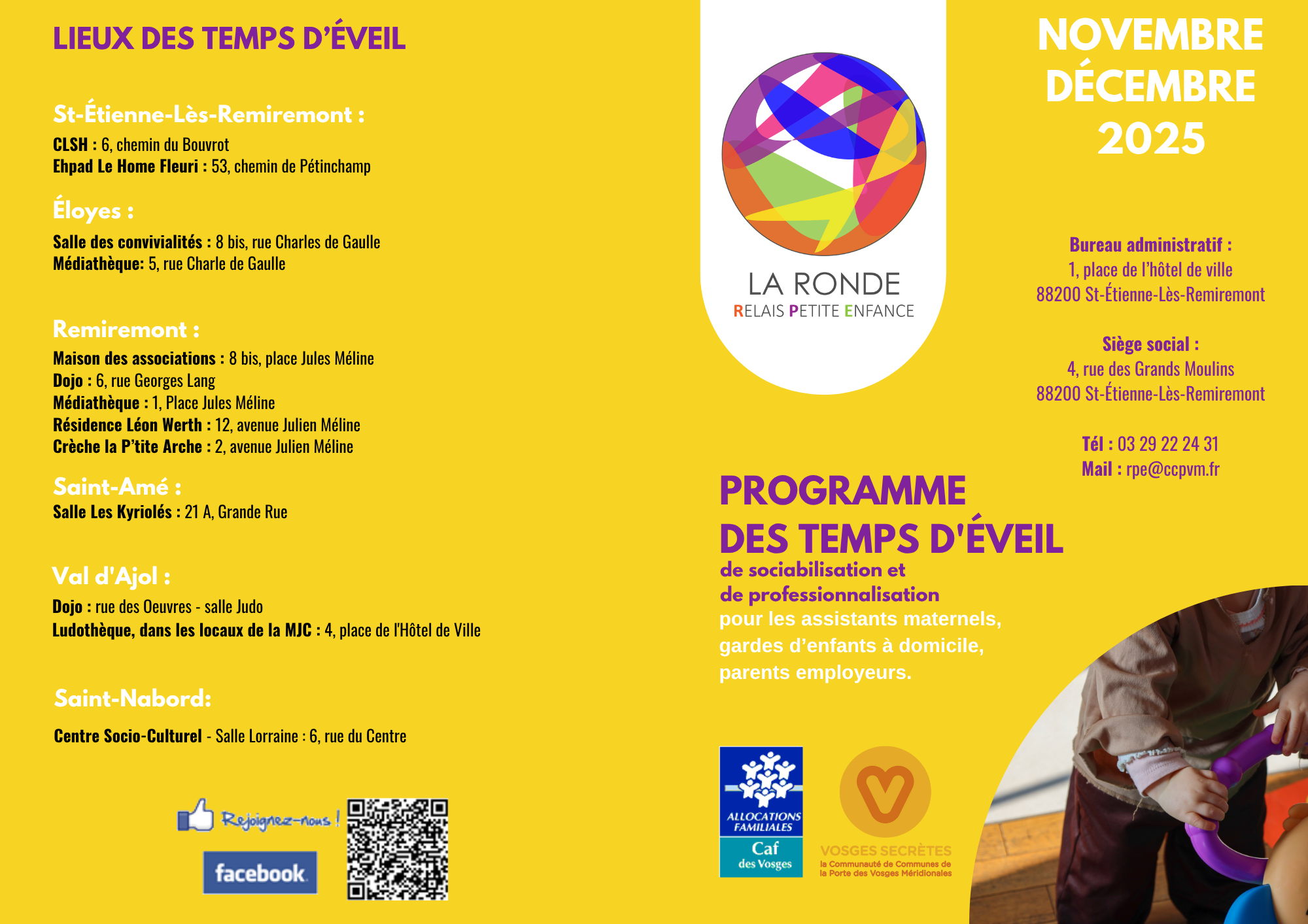 Vous trouverez ci-dessous le planning des ateliers d'éveil pour les mois de novembre et décembre 2025.