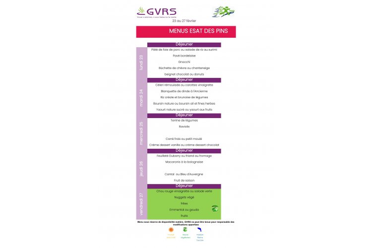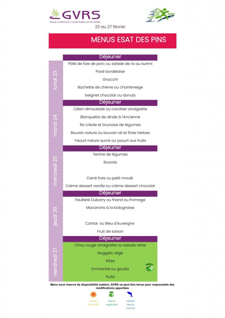 Menus restaurant scolaire