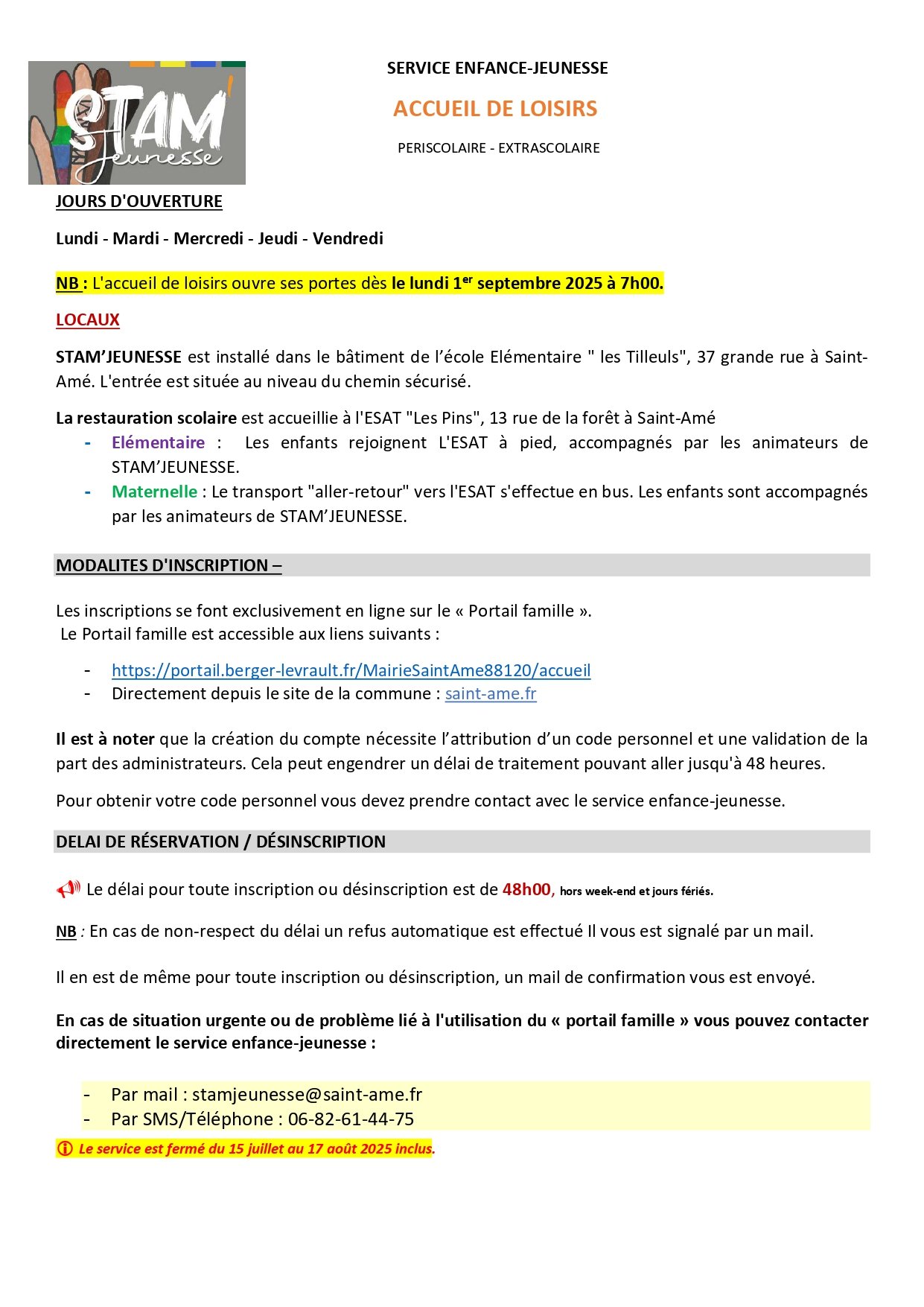 L'acte de réservation et de désinscription s'effectuent uniquement au moyen du portail famille : Portail berger-levrault/accueil