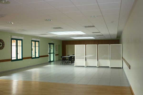 Salle municipale rénovée en 2014 de 112 m2 (18m x 7m). Accessible aux personnes à mobilité réduite. Elle dispose d'une cuisine équipée (frigos, plaques et four électrique, évier, pas de lave-vaisselle ni de vaisselle), écran de projection, 1 vestiaire. Elle peut accueillir 100 personnes assises ou 120 debout. Type d'événement : manifestations communales, associatives, familiales, réunions, conférences.